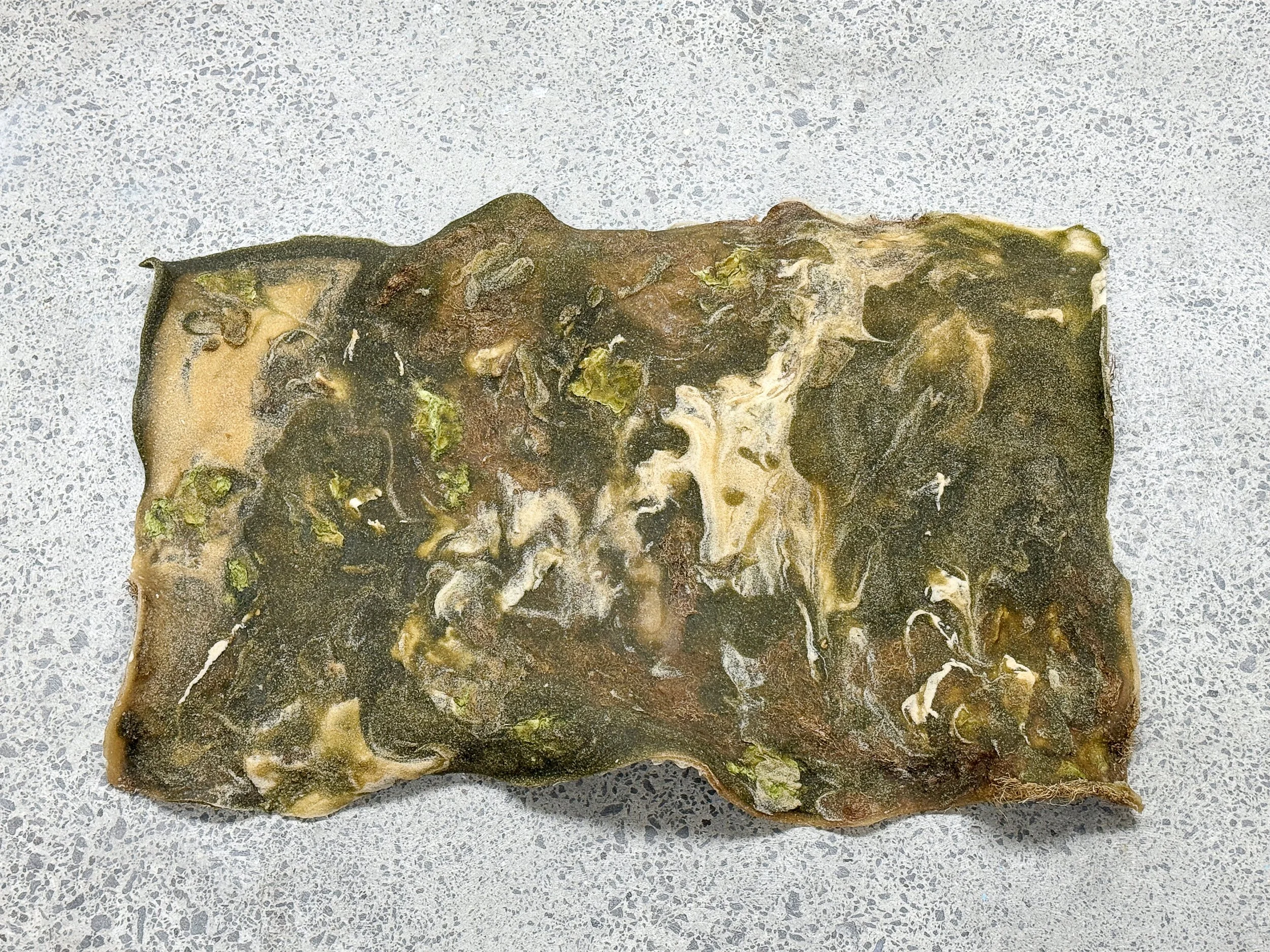 There is importance in acknowledging our interconnectedness with all living things and the matter that makes up our environment. We all have an obligation to be eco-conscious and make positive change. In considering my environmental impact as an artist, my art practice is in a transitory and experimental phase. Influenced by aspects of environmentalism, futures thinking, and new materialism, I undertake exploratory methods and processes to challenge my own conditioning around the traditional Westernised ways of creating and doing. Within this body of work, I showcase outcomes of material investigations that utilise natural materials such as root systems and algae-based bioplastic and demonstrate some of the processes designed to enable me to work collaboratively with nature. The challenge for me not only lies in producing natural materials, allowing them to have agency in the process, finding ways to amalgamate them and incorporate them into my practice; it also includes inciting a shift in mindset to continually challenge adherence to what my perceptions are traditionally and generically acceptable in art. It is challenging at times not to be passive and resistant to transformation and to fall into the easy comfort of what I know and understand.