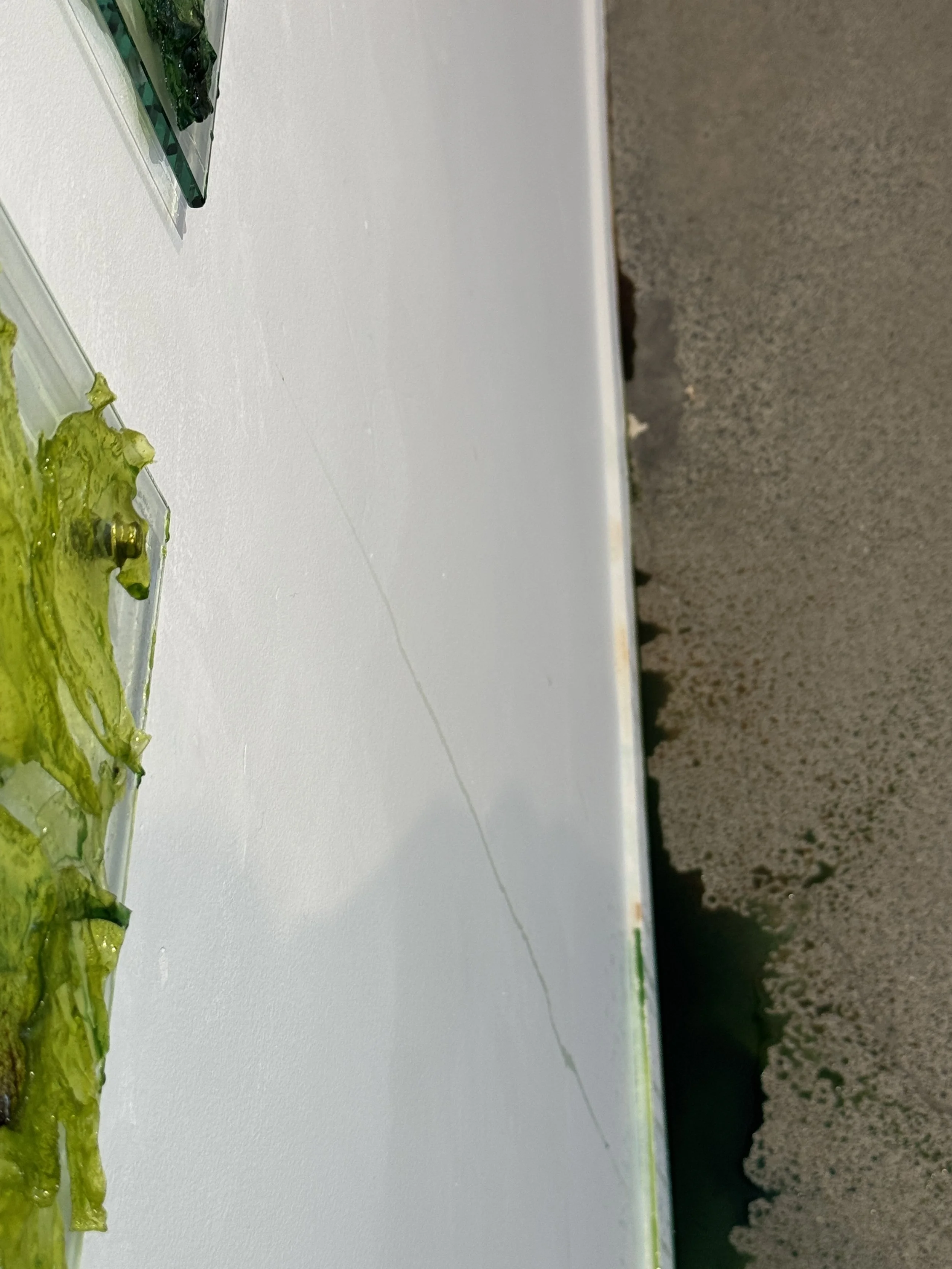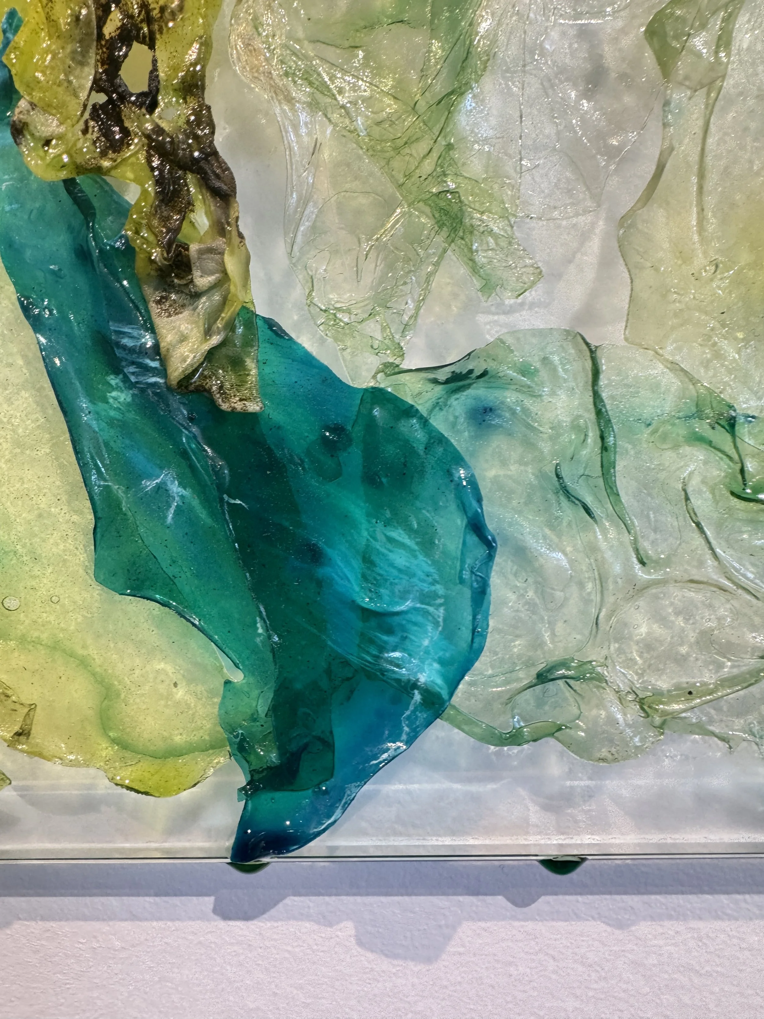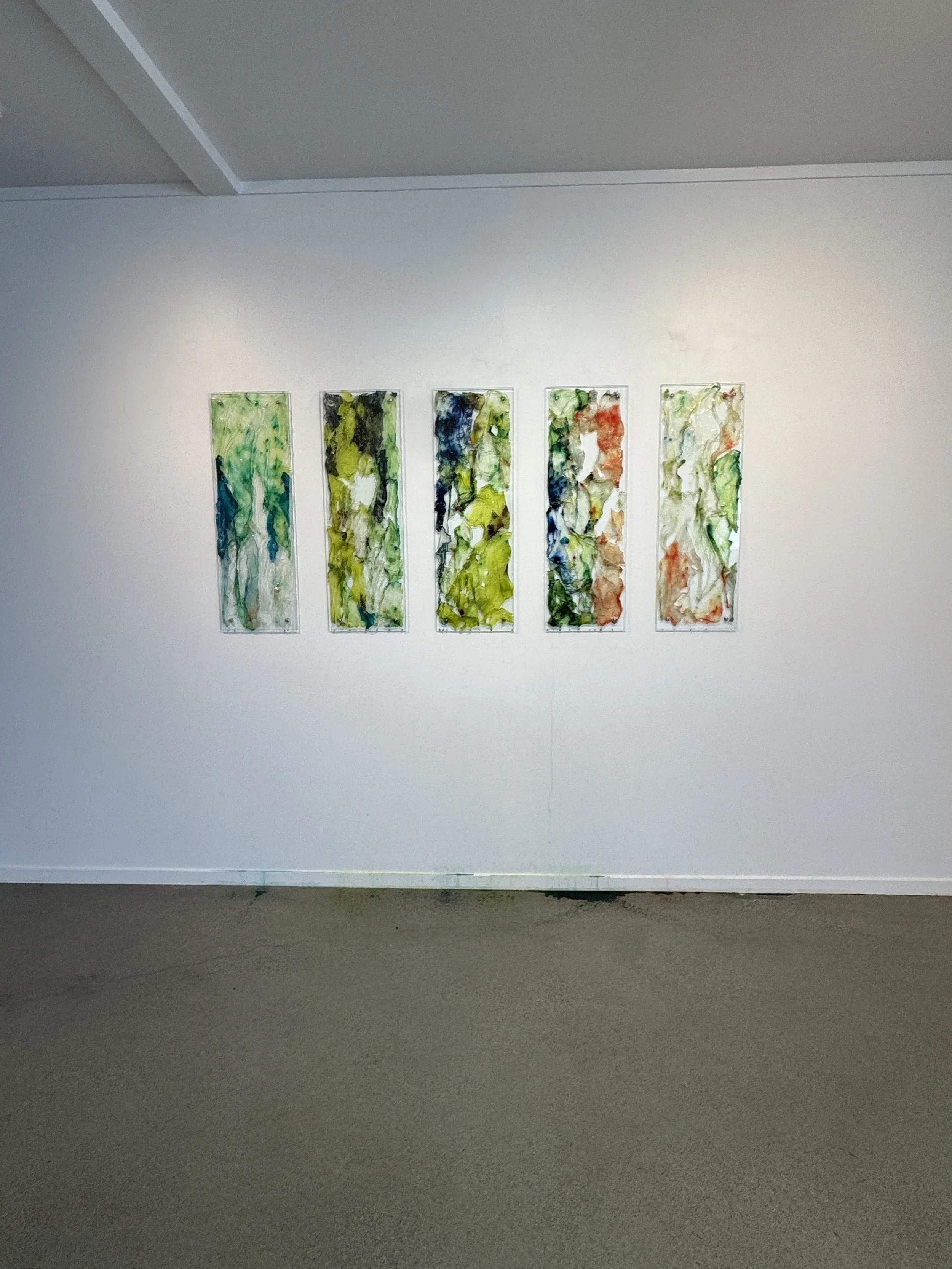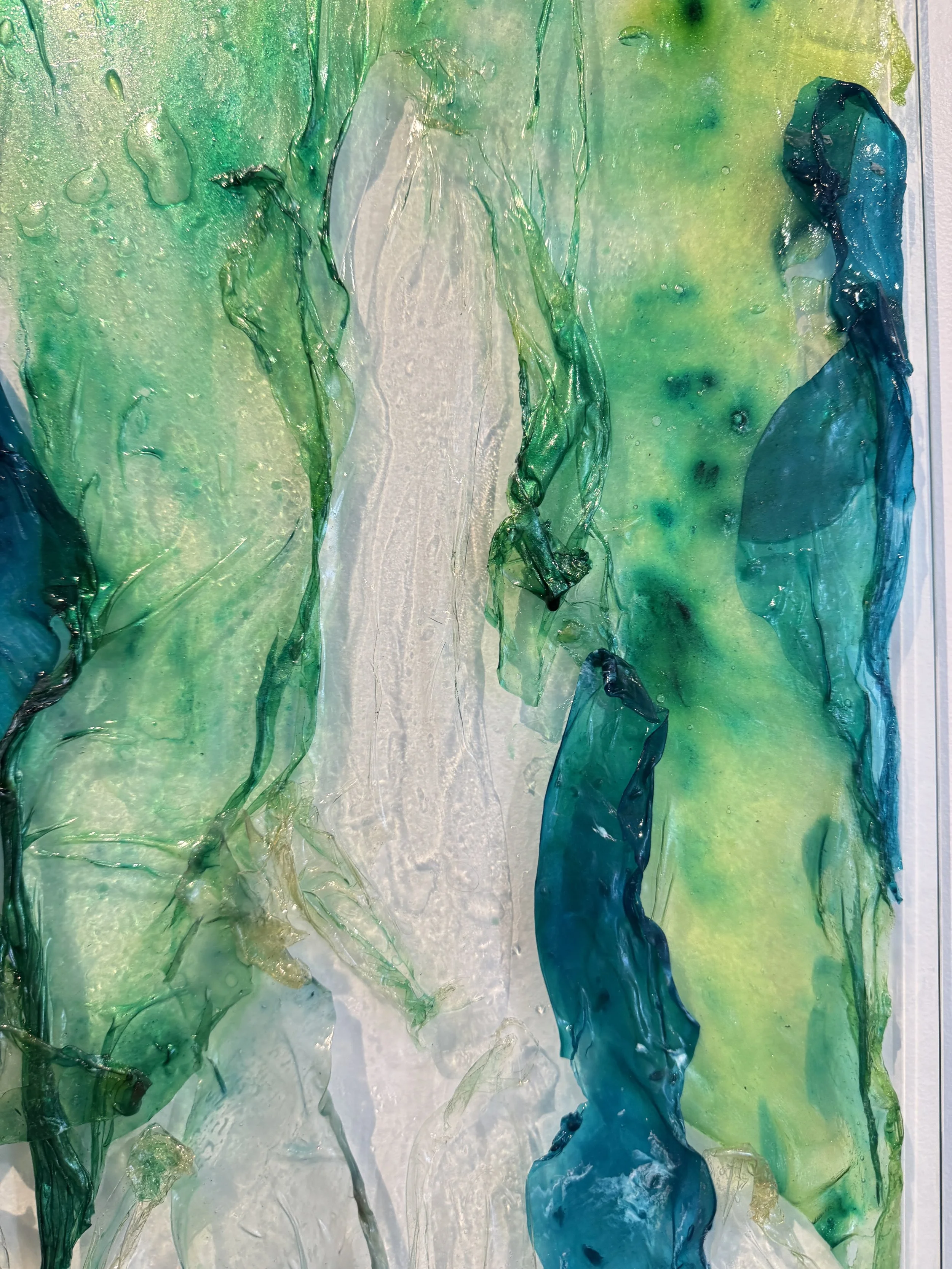 ‘Surrender' is a performatively ‘oozing’ installation of biopolymer on glass panes that explores potential, transience and the essence of embracing ambiguity. Derived from algae, one of the most ancient life-forms and considered fundamental to the start and maintenance of life on Earth, the biopolymer is a material that embodies evolution, potential, and transience. Life is filled with uncertainties; in surrendering to moments of ambiguity, the opportunity for growth and transformation can be discovered. 'Surrender' is about resilience, having faith in process, and discovering the potential (and the beauty) that can emerge from the unknown. It is an invitation to trust in the journey rather than fixating on the destination.